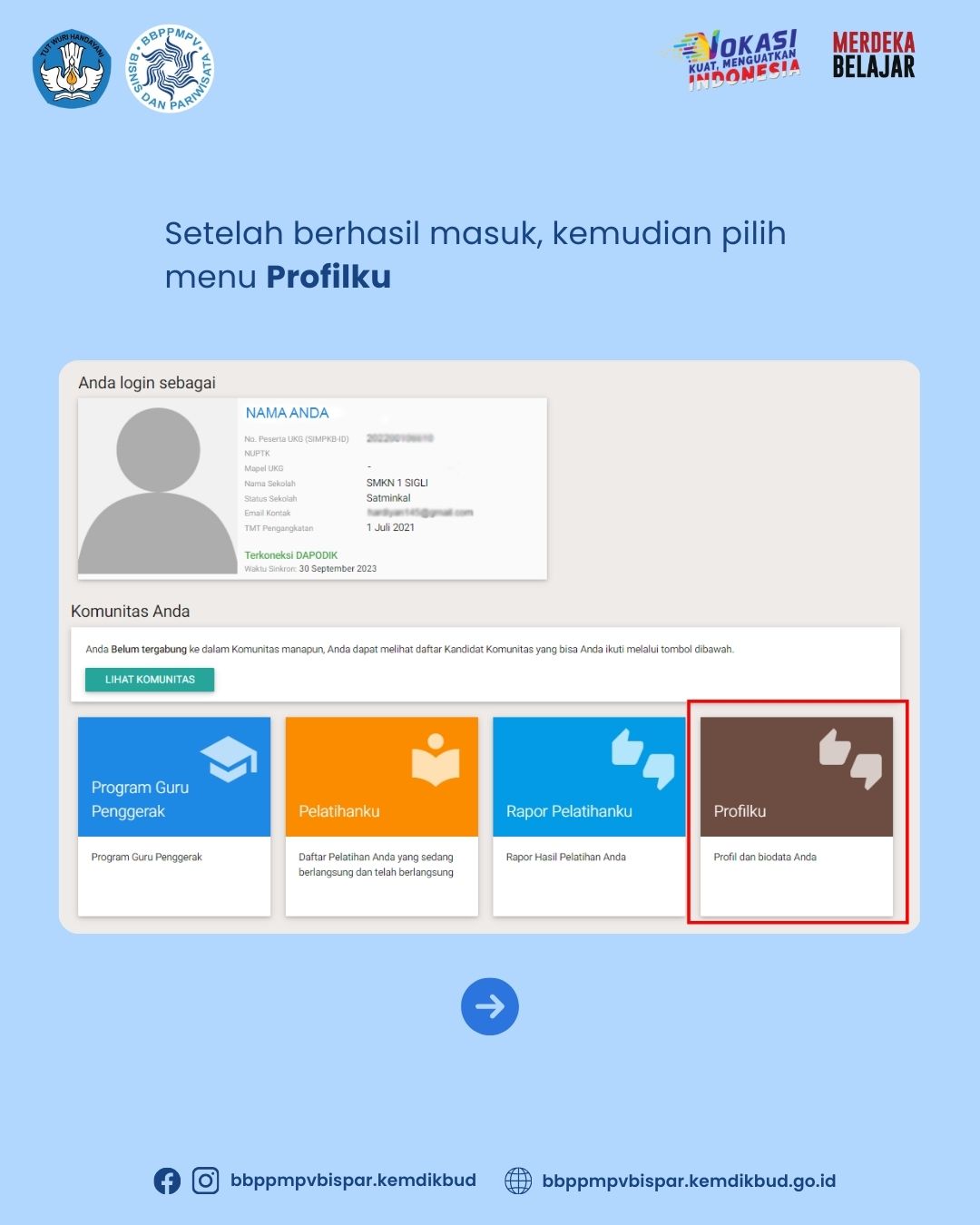 Langkah-langkah memperbarui data profil SIMPKB silakan ikuti infografis berikut.