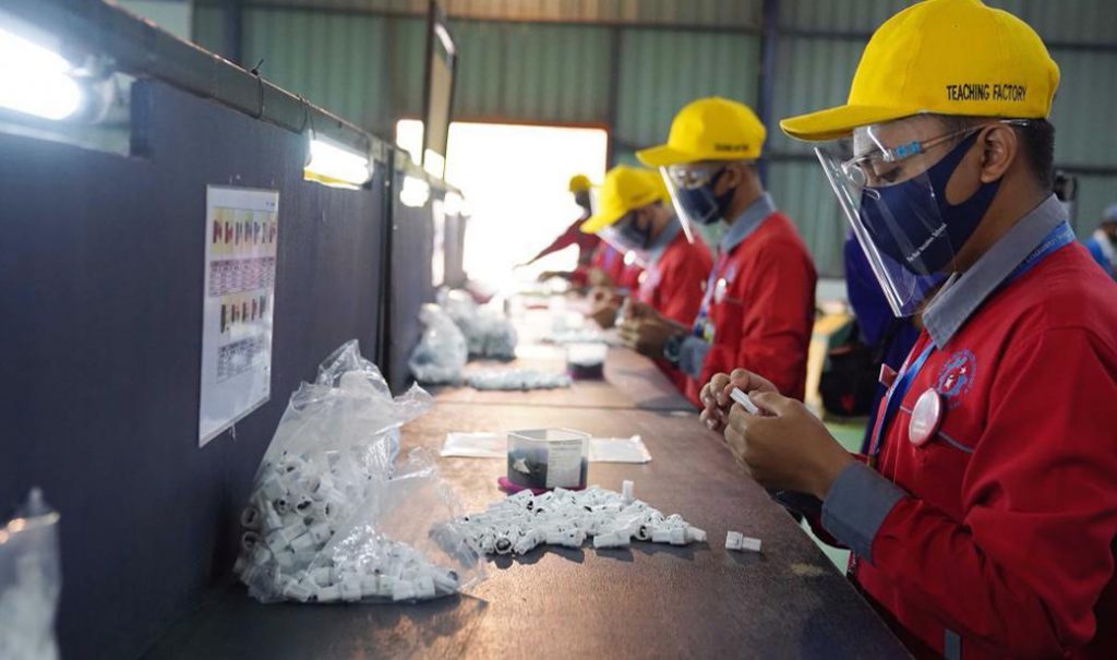 Sedangkan empat SMK yang dimaksud merupakan satuan pendidikan vokasi yang mengawali dan memfasilitasi kegiatan kerja sama antara DUDI di kawasan dengan SMK di sekitar.