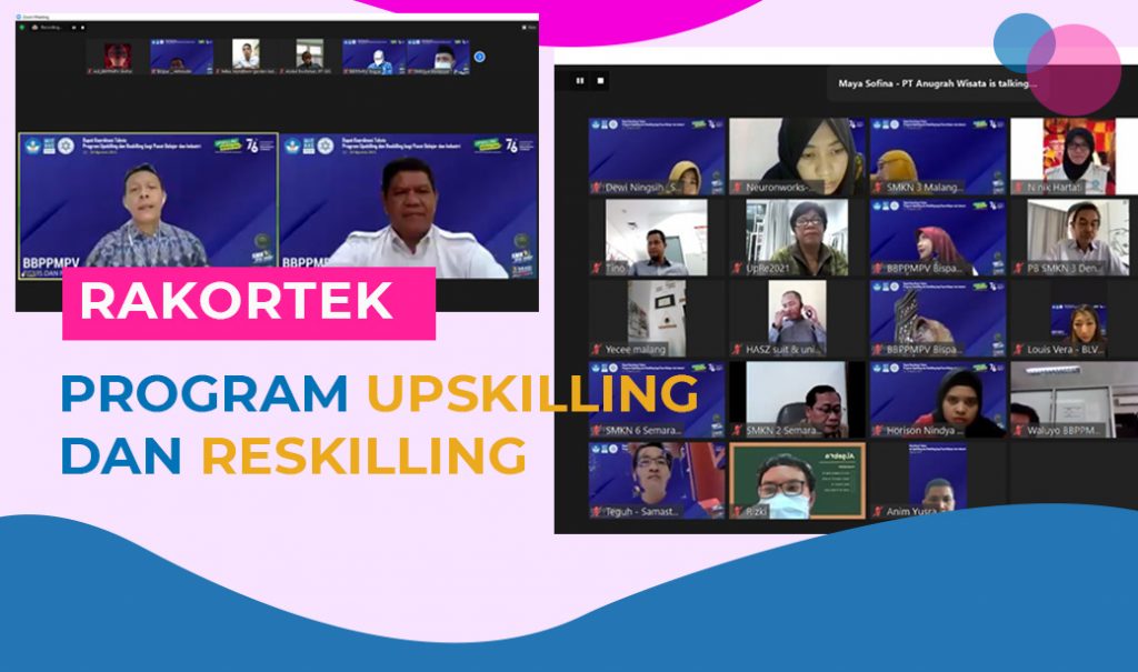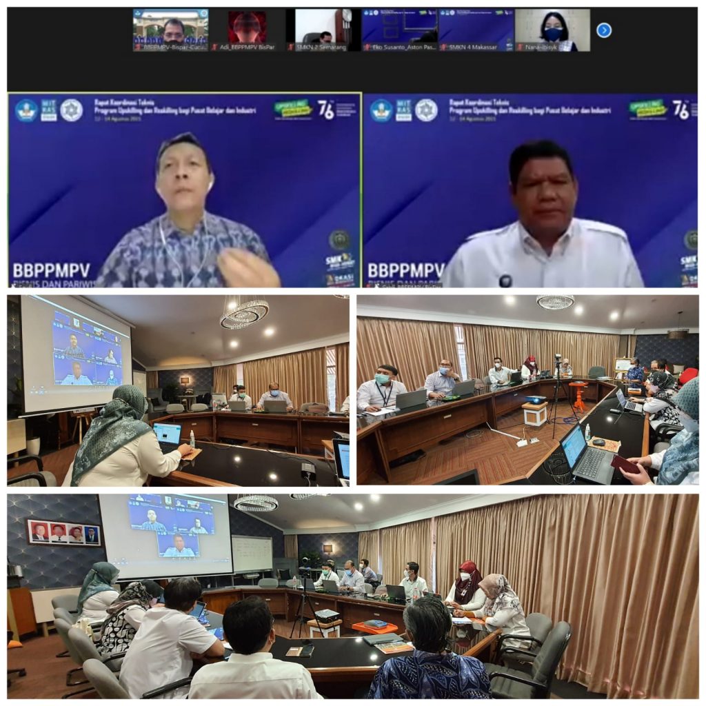 BBPPMPV Bisnis dan Pariwisata, menyelenggarakan kegiatan Rapat Koordinasi Teknis : Program Upskilling dan Resklilling bagi Pusat Belajar dan Industri. Kegiatan ini dibuka melalui konferensi video oleh Direktur Kemitraan dan Penyelarasan Dudi, Dr. Ahmad Saufi, S.Si., M.Sc., Kamis (12/8).