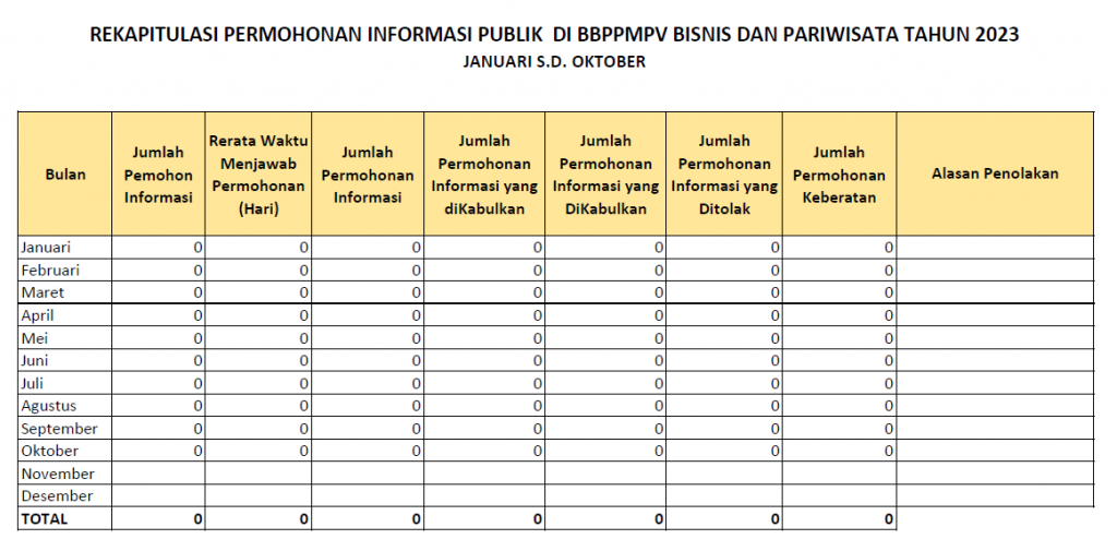 Rekapitulasi Permohonan Informasi Publik BBPPMPV Bisnis dan Pariwisata