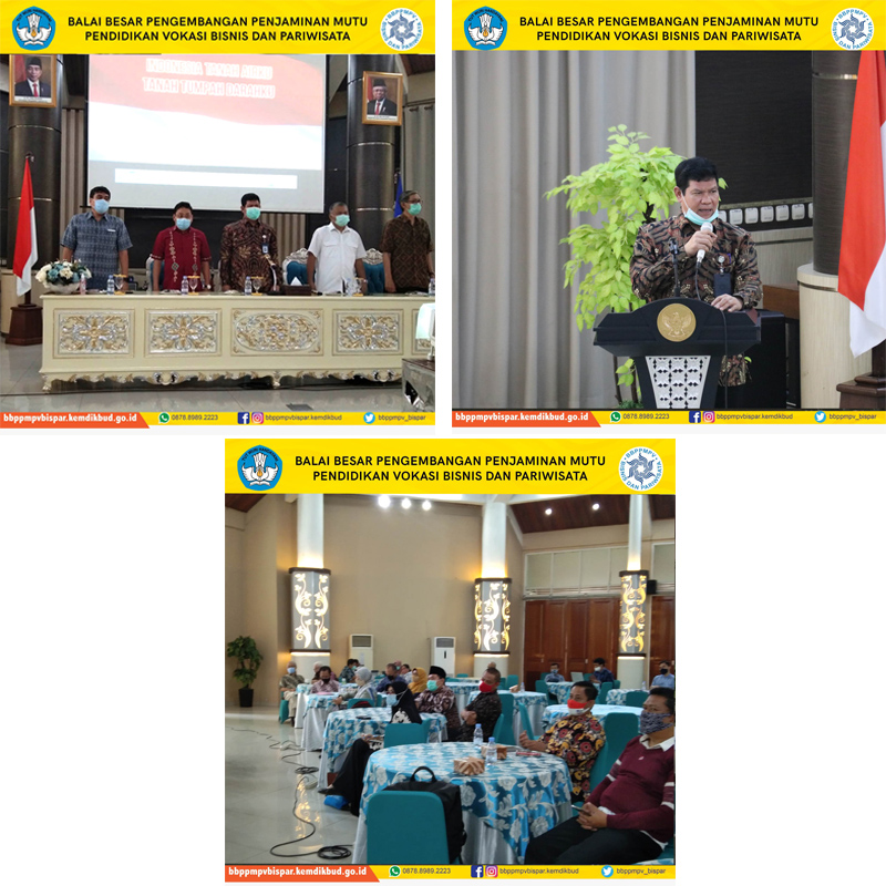 BBPPMPV Bisnis dan Pariwisata menyelenggarakan Sosialisasi Program Revitalisasi dan Pemetaan Potensi BBPPMPV Bispar, dan Kegiatan Ujicoba Instrumen melalui Aplikasi Riset Evaluasi Program Pendidikan Vokasi, bertempat di BBPPMPV Bispar, Depok, Selasa (22/9). Sesditjen Diksi, Henri Togar Hasiholan Tambunan, S.E., M.A., hadir dan memberikan arahannya terkait program revitalisasi BBPPMPV Bispar.