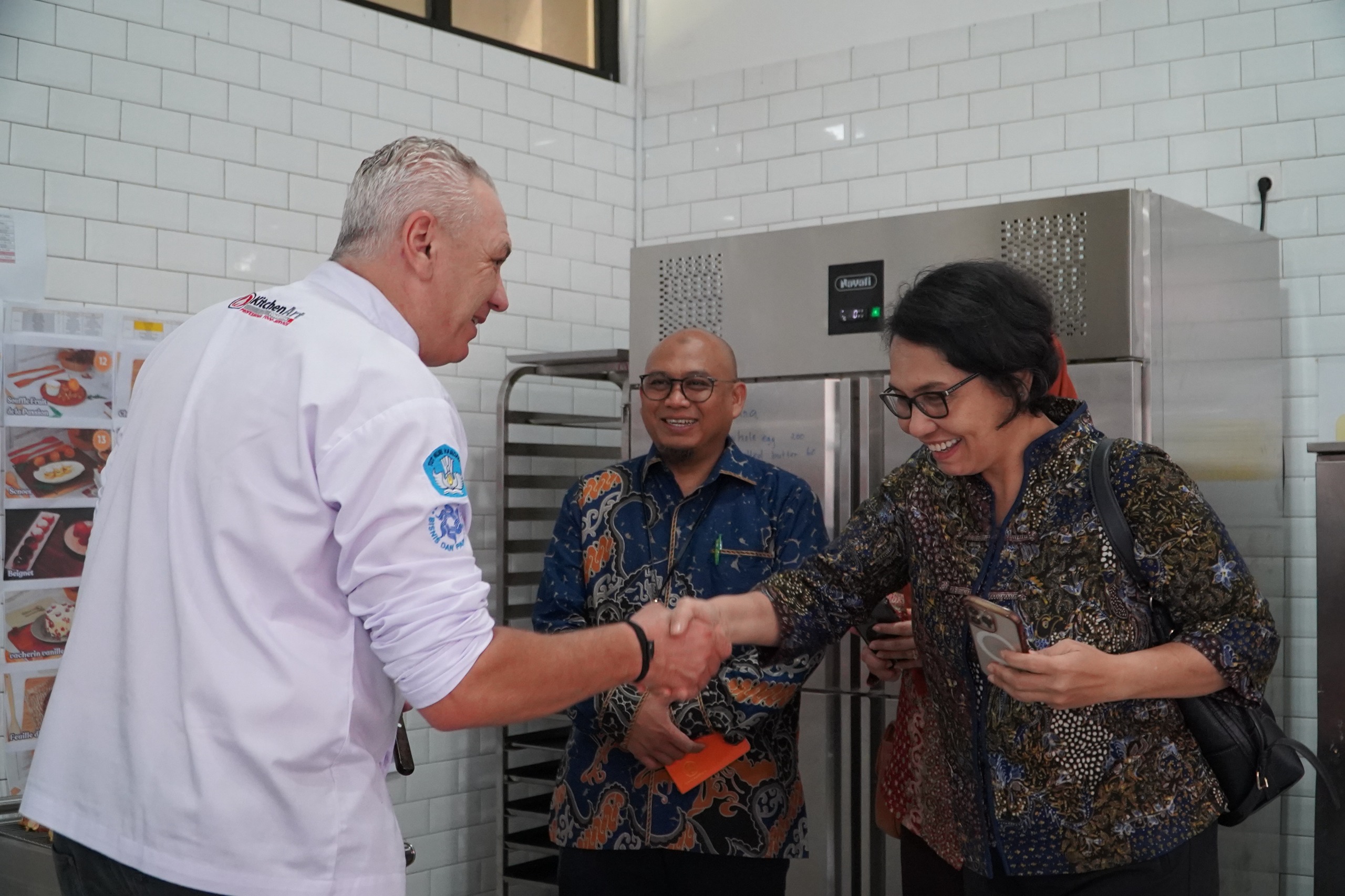 Jakarta – Sekretaris Jenderal Kementerian Pendidikan Dasar dan Menengah, Ir. Suharti, M.A., Ph.D., mengungkapkan kesan positif atas terlaksananya pelatihan “Training of Trainers on French Cooking for Vocational Culinary Teaching”, di Balai Besar Pengembangan Penjaminan Mutu Pendidikan Vokasi (BBPPMPV) Bispar. Dalam kunjungannya, Suharti menyampaikan kebahagiaannya dapat melihat langsung proses pelatihan para guru dalam bidang pastry dan cookery.